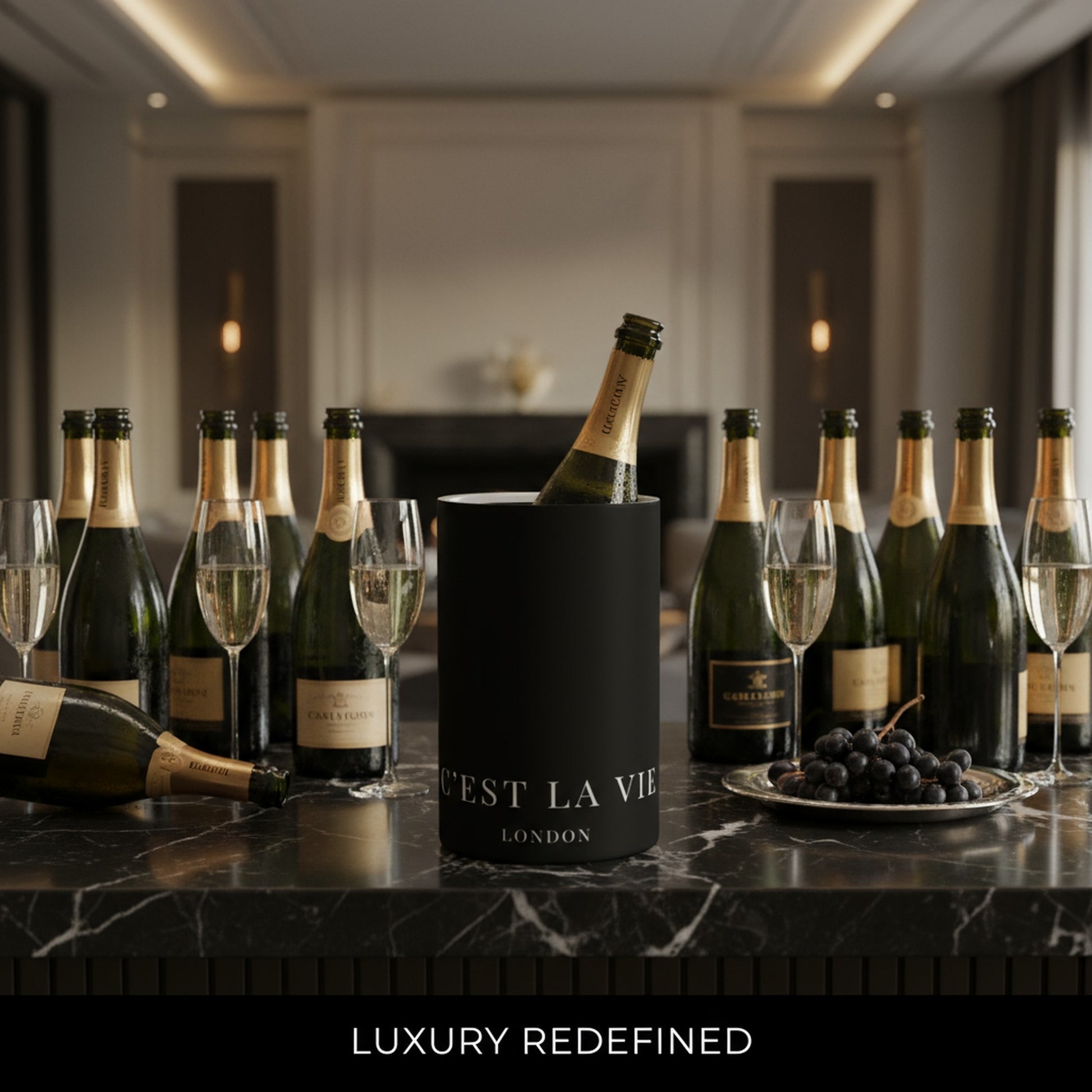 C'EST LA VIE Black Luxury Wine Cooler - Elegant Wine Chiller