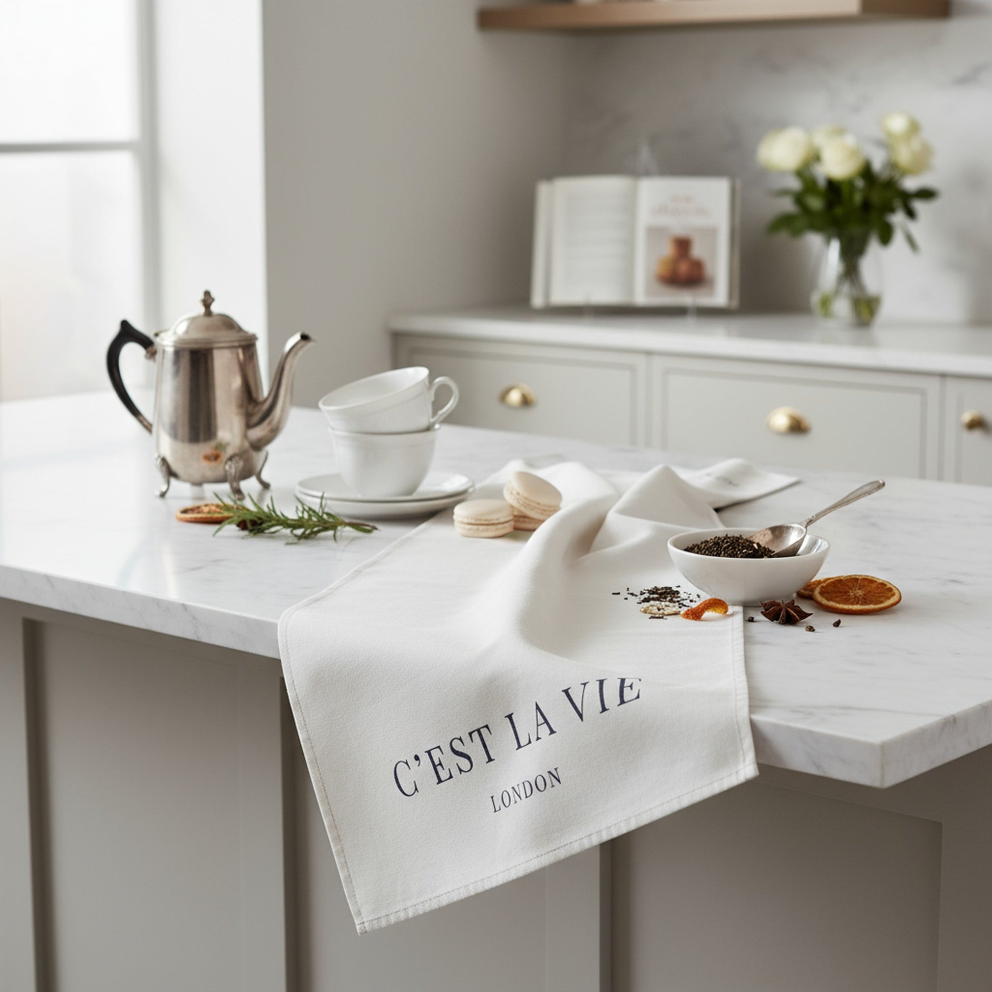 Chic C'EST LA VIE Cream Tea Towel - Stylish Home Accessory
