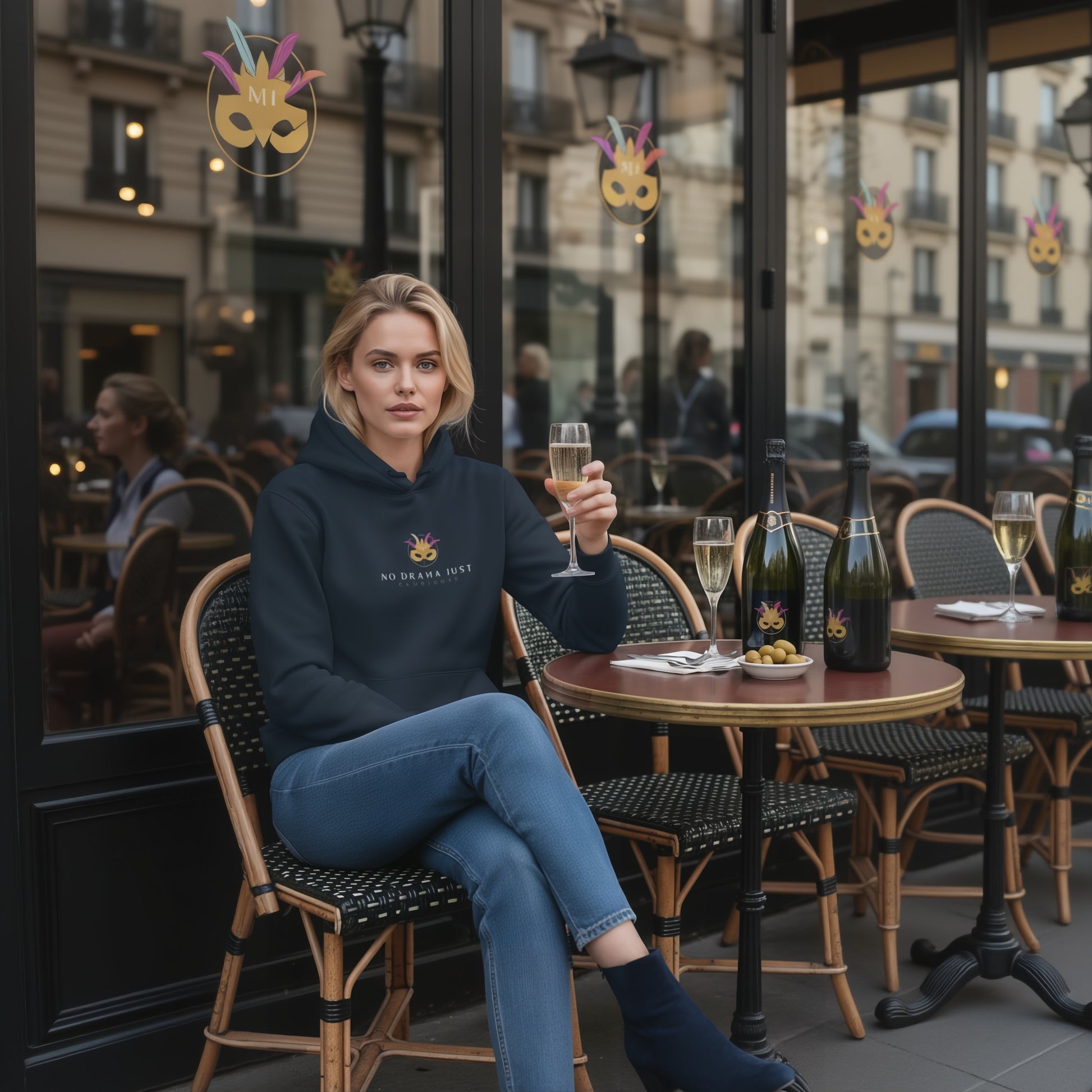 Elevate your casual style with our No Drama Just Champagne luxury navy hoodie. Perfect for relaxing or a night out, this soft and stylish piece features a trendy slogan that embodies a carefree spirit. Whether you’re lounging at home or meeting friends, this hoodie makes a statement. Ideal for all champagne lovers, it’s a must-have addition to your wardrobe. Treat yourself or gift it to someone special.