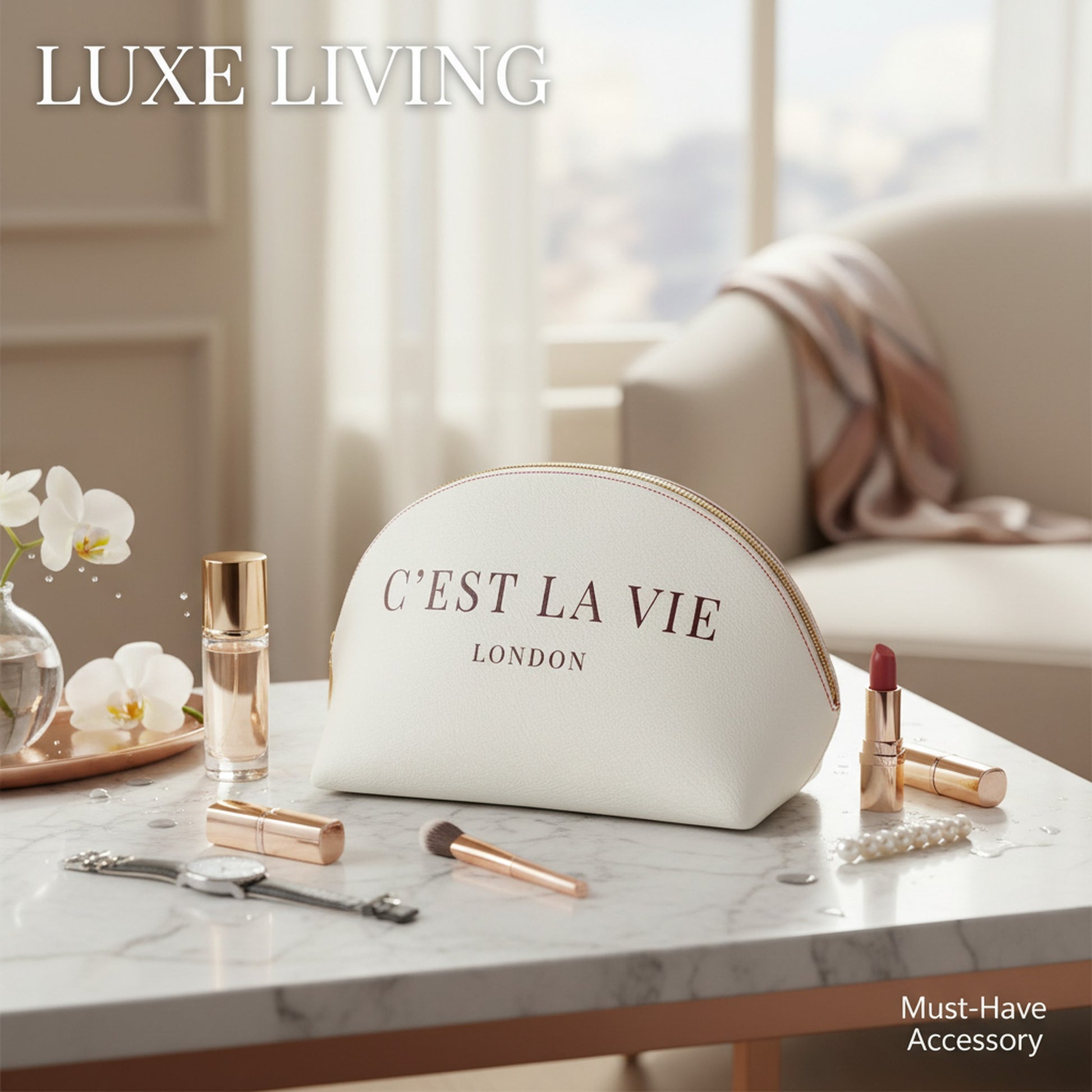 Elegant C'EST LA VIE Cream Makeup Bag for Beauty Lovers