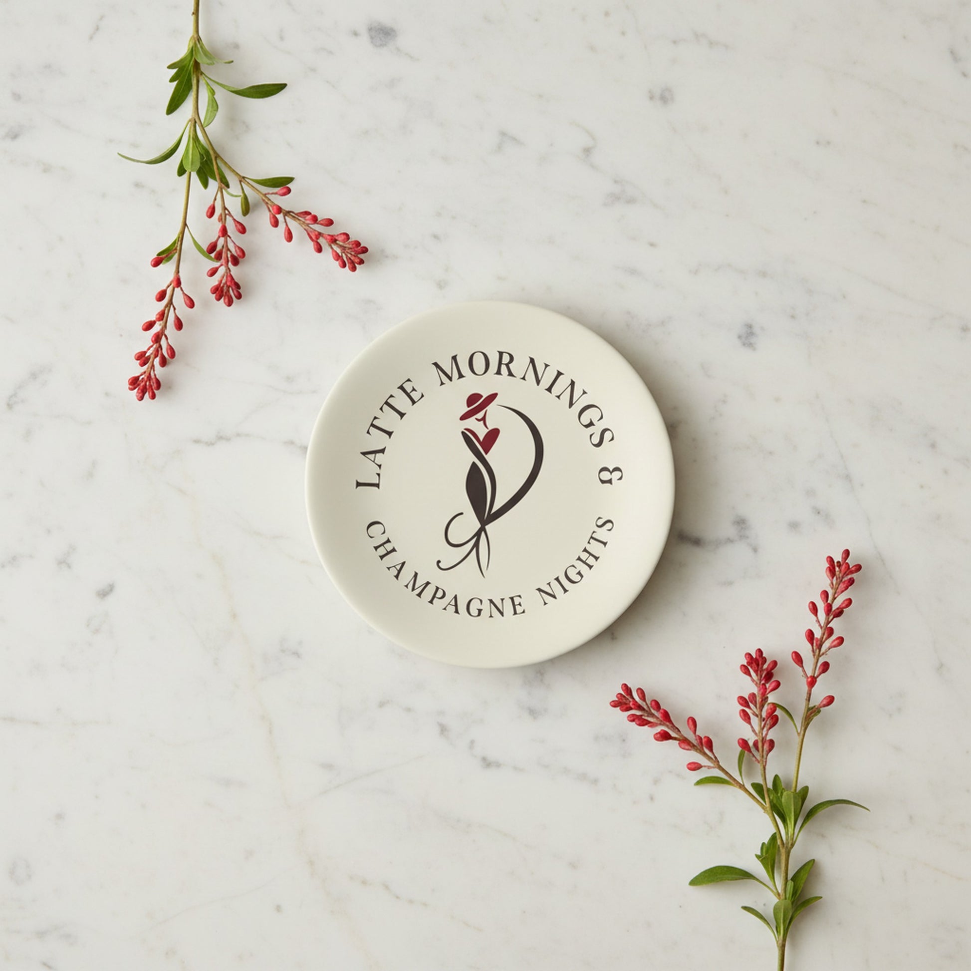 Latte Mornings & Champagne Nights: Set of 2 Elegant Bone China Plates