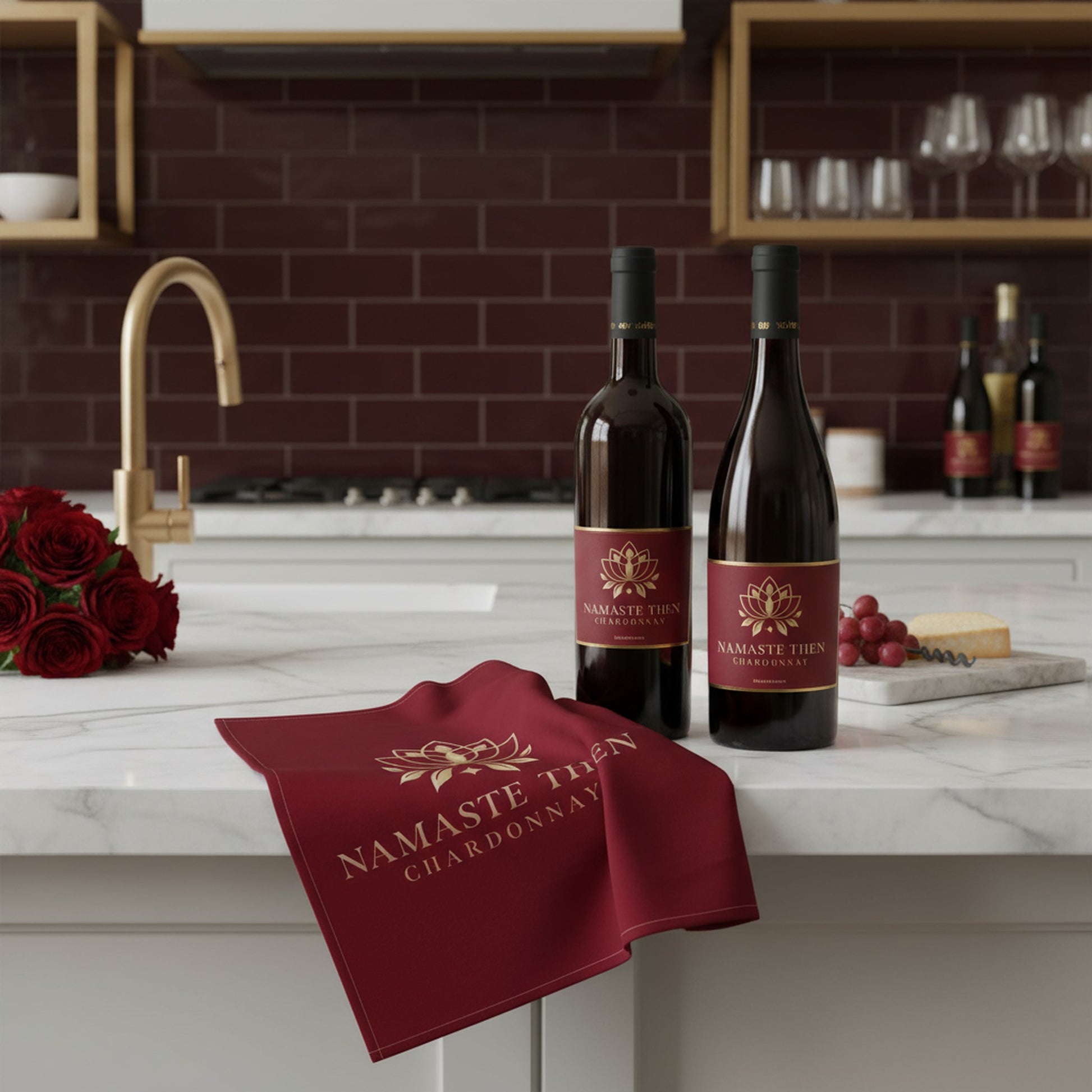 Namaste Then Chardonnay Burgundy Tea Towel - Zen Kitchen Decor