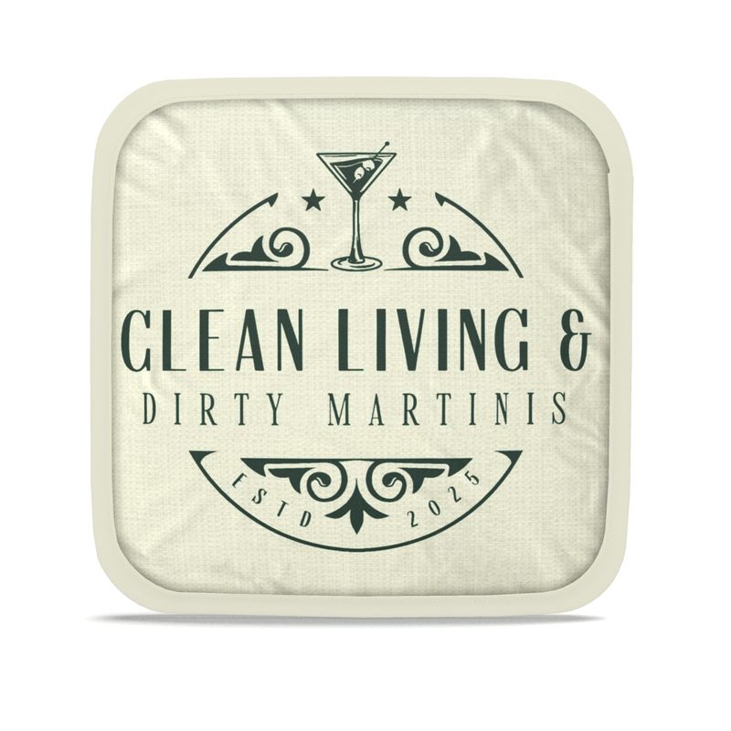 Elevate your kitchen experience with our Clean Living & Dirty Martinis Set of Two Pot Grabs. Perfect for cocktail enthusiasts and home chefs alike, these stylish pot grabs protect your hands while adding a touch of humour to your cooking routine. Made from durable, heat-resistant materials, they're perfect for handling hot pots and pans. Enjoy the perfect blend of function and fun with this unique set that makes a great gift or a delightful addition to your own kitchen.
