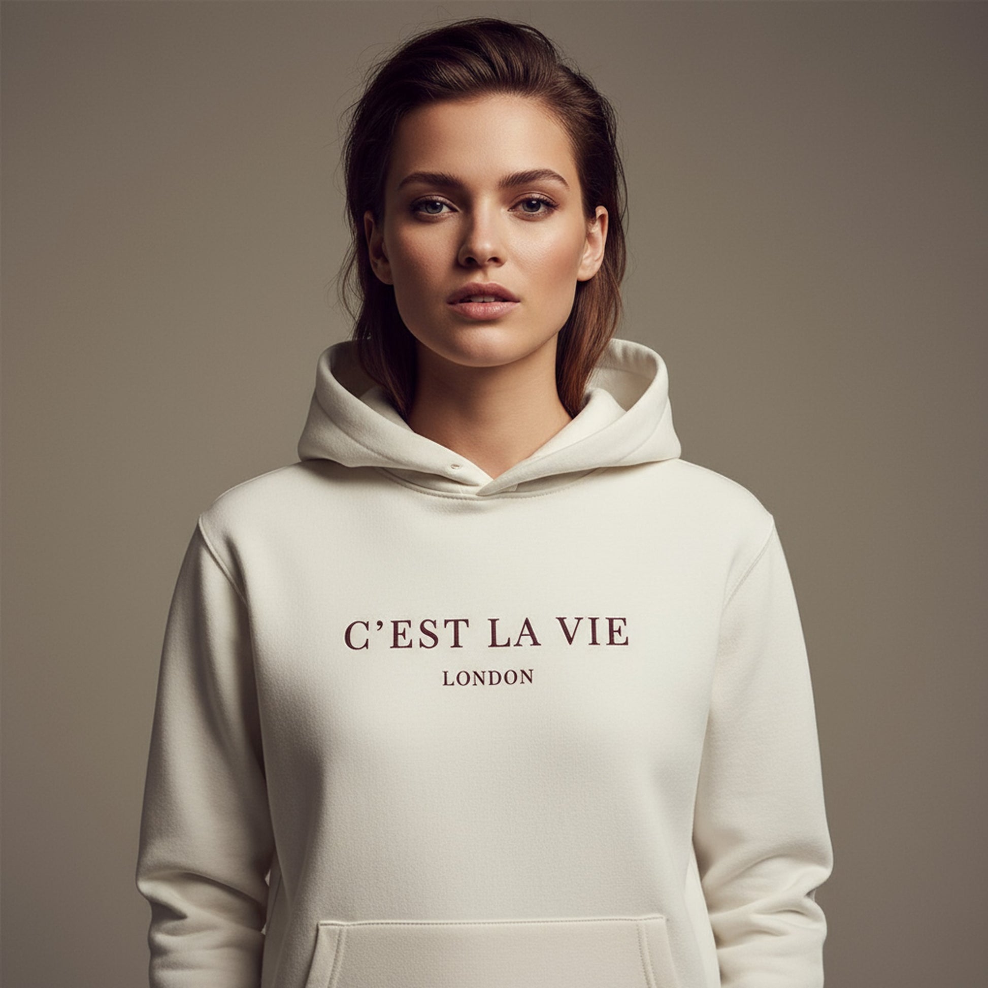 Embrace effortless style with our C'EST LA VIE luxury cream hoodie. This chic and cosy essential features a soft, premium fabric, perfect for layering or lounging in. The elegant design boasts a subtle yet striking graphic, making it a versatile addition to your wardrobe. Dress it up for a night out or keep it casual for a lazy day in. Ideal for gifting or treating yourself, our luxury hoodie is a statement piece that embodies comfort and sophistication.
