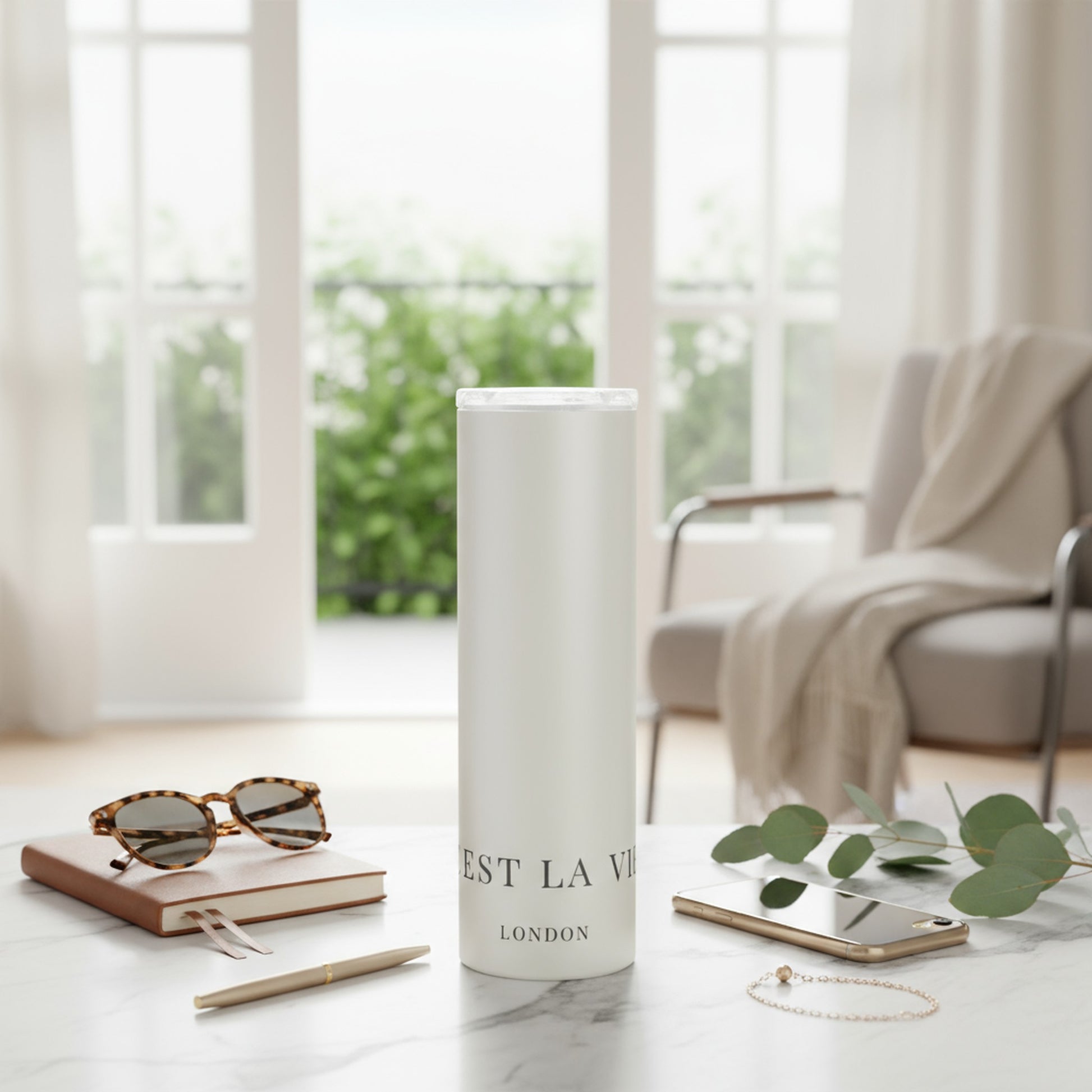 Stay stylish and hydrated with our C'EST LA VIE chic water bottle. This beautifully designed bottle is perfect for those who appreciate elegance and functionality. Whether you're at the gym, the office, or on the go, this chic water bottle is your perfect companion. Embrace the 'C'EST LA VIE' lifestyle and make a statement wherever you are. Perfect for gifting or treating yourself.